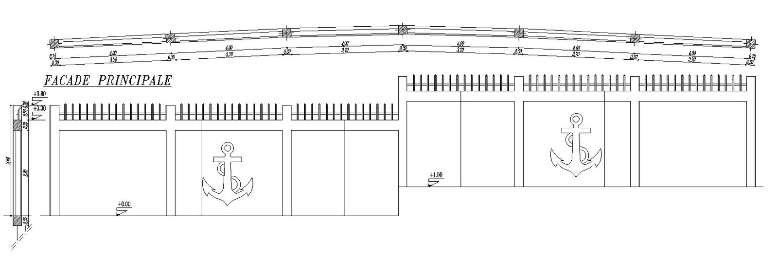 AutoCAD design of the section and elevation of the boundary wall with details, CAD file, dwg file