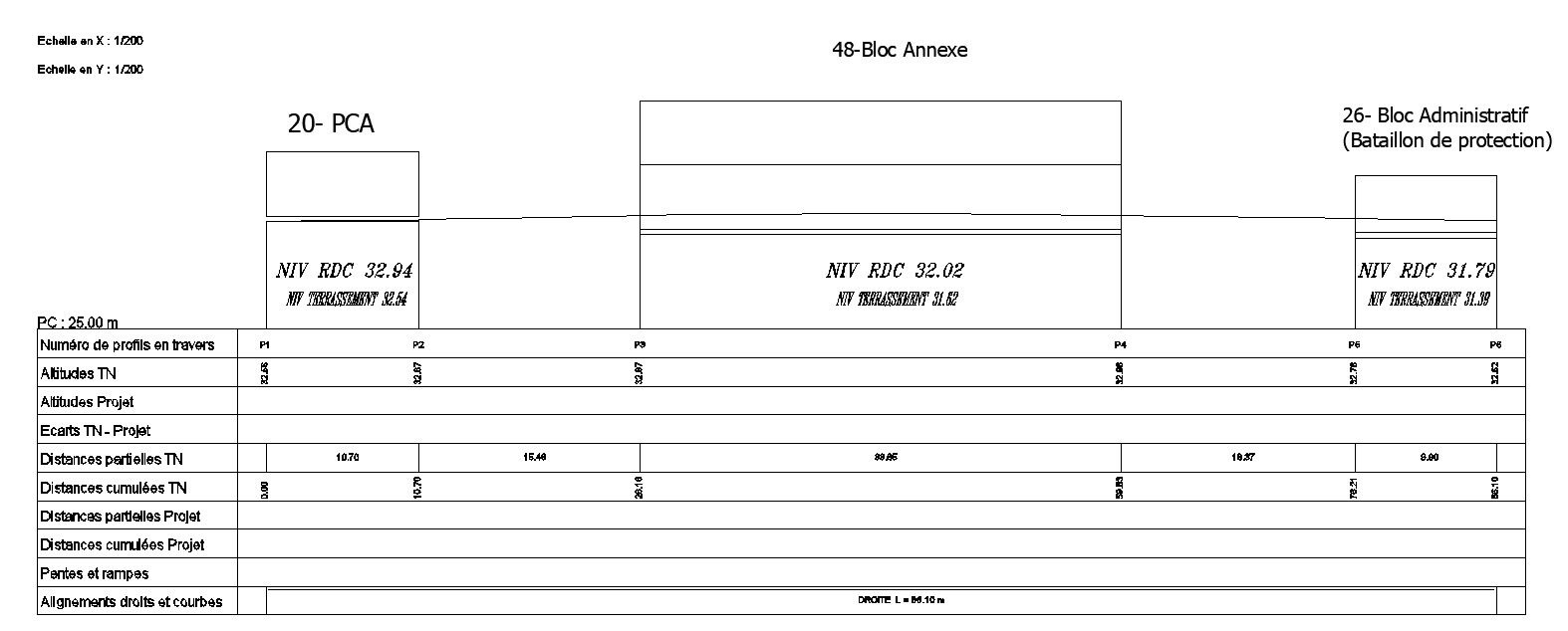 AutoCAD 2D drawing of longitudinal section of lower level of the earthwork with details, CAD file, dwg file
