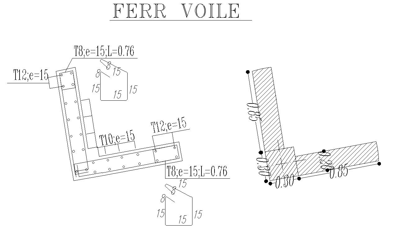 2D design of the structure with reinforcement details in AutoCAD drawing, CAD file, dwg file