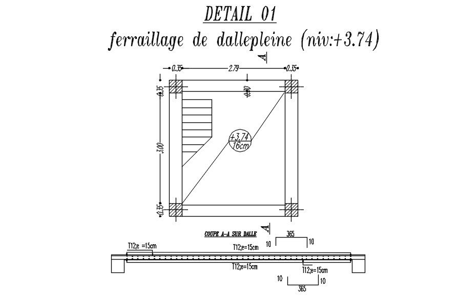 2D design of slab reinforcement with details in AutoCAD drawing, CAD file, dwg file