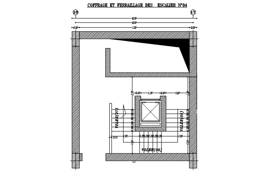 This architectural drawing is FORMWORK AND REINFORCEMENT OF STAIRS design in detail AutoCAD 2D drawing, CAD file, dwg file. For more details and information download the drawing file. Thank you for visiting our website cadbull.com.