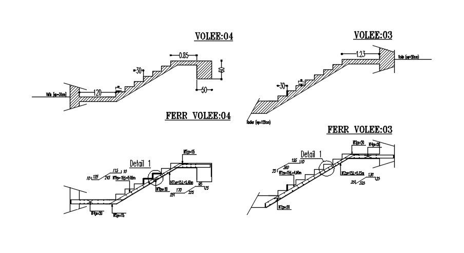 This architectural drawing is Stair reinforcement details in AutoCAD 2D drawing, CAD file, and dwg file. For more details and information download the drawing file. Thank you for visiting our website cadbull.com.