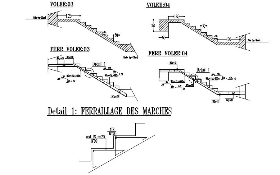 This architectural drawing is the 2D drawing of the REINFORCEMENT OF STEPS in detail AutoCAD design, CAD file, dwg file. For more details and information download the drawing file. Thank you for visiting our website cadbull.com.