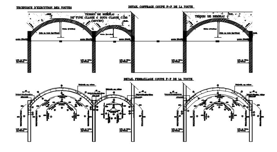 This architectural drawing is a REINFORCEMENT DETAIL F-F SECTION OF THE TUNNEL in detail AutoCAD 2D drawing, CAD file, dwg file. For more details and information download the drawing file. Thank you for visiting our website cadbull.com.