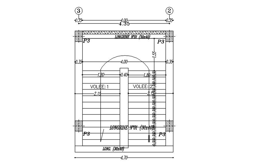 2D design of staircase plan in detail AutoCAD drawing, CAD file, dwg file