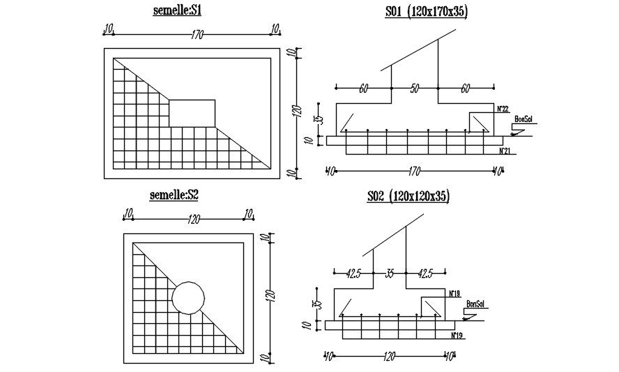 This architectural drawing is a Foundation design with reinforcement details in AutoCAD 2D drawing, CAD file, and dwg file. For more details and information download the drawing file. Thank you for visiting our website cadbull.com.