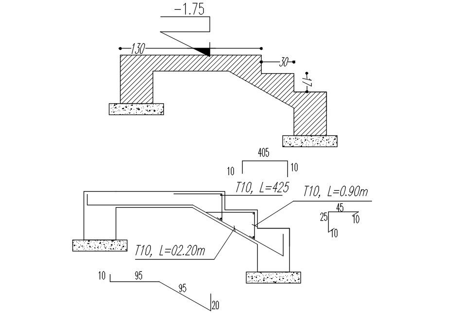 Staircase formwork and reinforcement details in AutoCAD 2D drawing, CAD file, dwg file