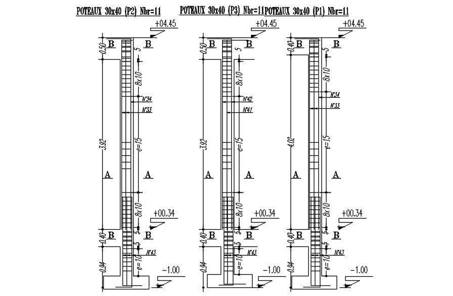 This architectural drawing is a Design of a cross-section of Columns with reinforcement details in AutoCAD 2D drawing, CAD file, and dwg file. For more details and information download the drawing file. Thank you for visiting our website cadbull.com.