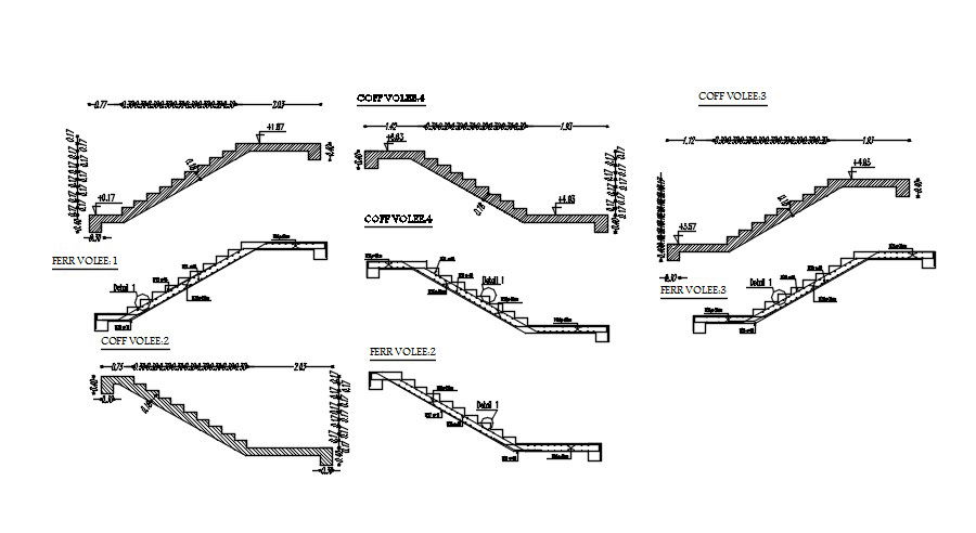Design of staircase with formwork and reinforcement details in AutoCAD 2D drawing, CAD file, dwg file
