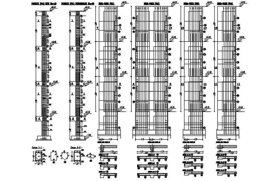 This architectural drawing is a Cross section of the wall and column with reinforcement details in AutoCAD 2D drawing, CAD file, and dwg file. For more details and information download the drawing file. Thank you for visiting our website cadbull.com.