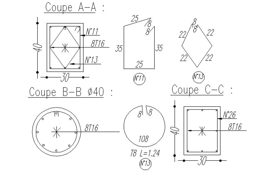 This architectural drawing is a Design of a cross-section of the column with reinforcement details in AutoCAD drawing, CAD file, and dwg file. For more details and information download the drawing file. Thank you for visiting our website cadbull.com.