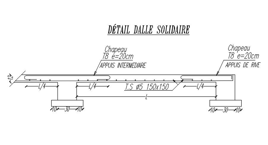 This architectural drawing is a Design of a slab with reinforcement details in AutoCAD 2D drawing, CAD file, and dwg file. In order to increase the slab's capacity for bearing loads, structural reinforcement is typically added to the bottom portion of the thickness. For controlling crack widths and boosting load capacities, the majority of structural slabs on the ground have top and bottom layers of reinforcement. For more details and information download the drawing file. Thank you for visiting our website cadbull.com.