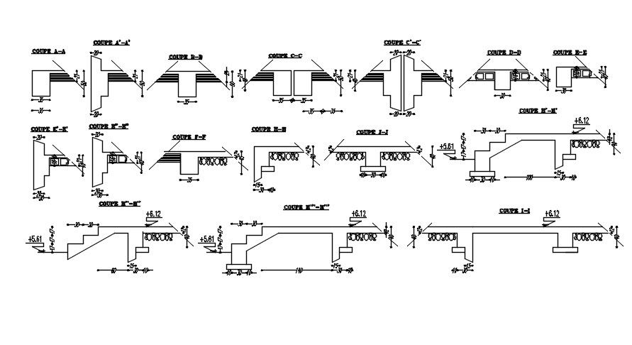 Cross section of staircase with formwork details in AutoCAD 2D drawing, CAD file, dwg file