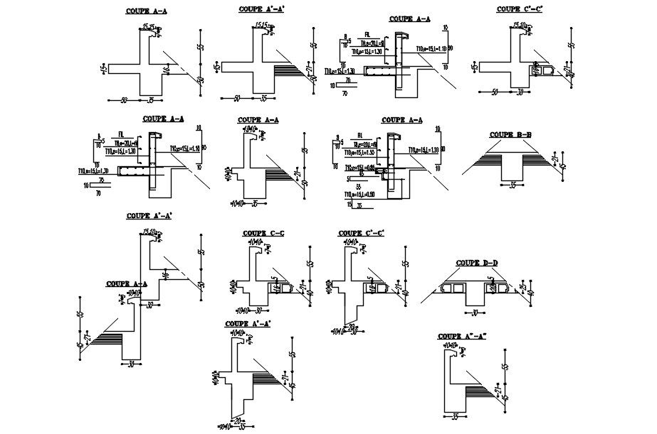 This architectural drawing is Different cross sections of formwork of the structure in detail AutoCAD 2D drawing, CAD file, dwg file. For more details and information download the drawing file. Thank you for visiting our website cadbull.com.