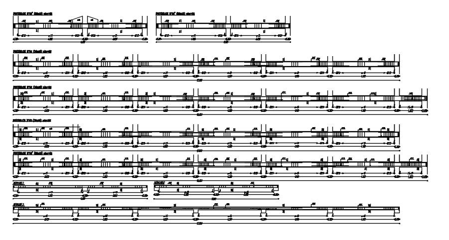 Detailed design of different cross sections of the beam with reinforcement details in AutoCAD 2D drawing, CAD file, dwg file