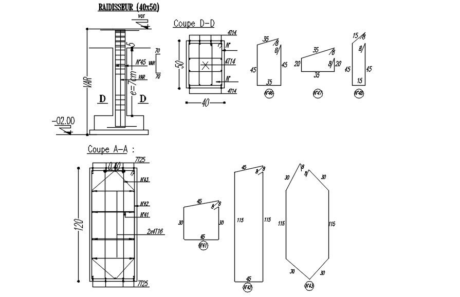 Stiffening details of the structure in AutoCAD 2D drawing, CAD file, dwg file