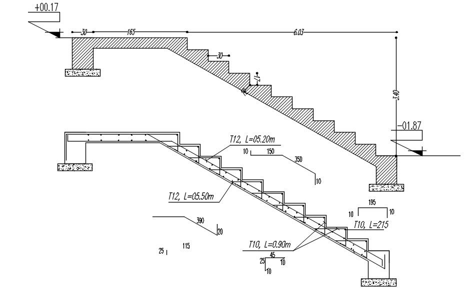 Formwork and reinforcement details of staircase in AutoCAD 2D drawing, CAD file, dwg file