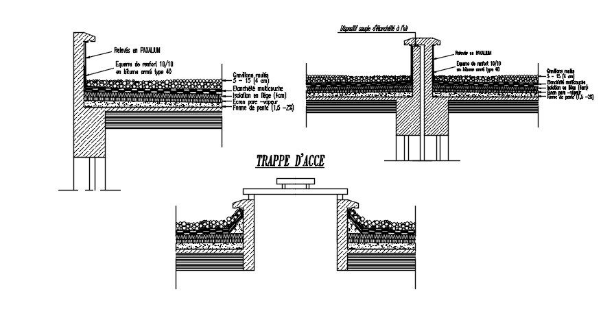 This architectural drawing is Waterproofing detail of the terrace in detail AutoCAD 2D drawing, CAD file, dwg file. The procedure of waterproofing any structure is known as structural waterproofing. The phrase "structural waterproofing" is more explicitly used to describe any waterproofing construction job that takes place below ground. For more details and information download the drawing file. Thank you for visiting our cadbull.com.