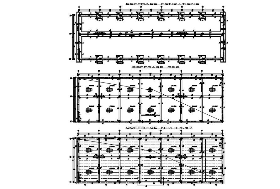 Different levels formwork plans in detail AutoCAD 2D drawing, CAD file, dwg file