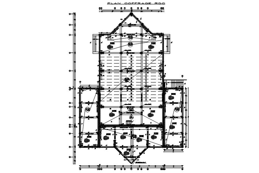 This architectural drawing is 2D design of ground floor formwork details in AutoCAD drawing, CAD file, dwg file. Formwork, Concrete is shaped into building-related structural forms using a mould. Fiberglass, plastic, steel, or wood can all be used as formwork. A bond breaker is applied to the inside surface to prevent the concrete from adhering to the mould. For more details and information download the drawing file. Thank you for visiting our cadbull.com.