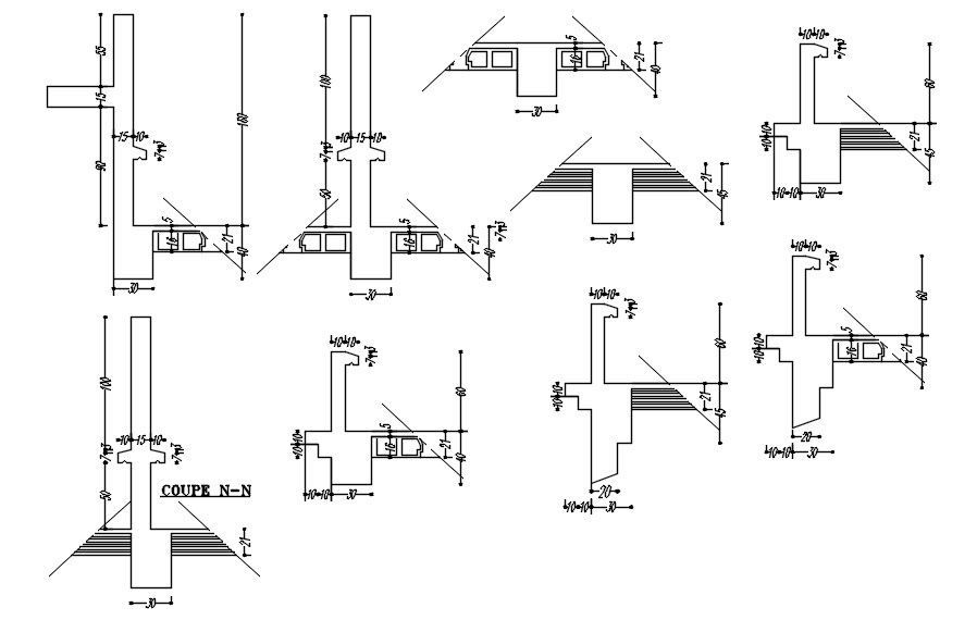 This architectural drawing is Section design of coping formwork with details in AutoCAD 2D drawing, CAD file, dwg file. A coping is an architectural construction that sits on top of a wall and extends down its sides, encasing the brick and protecting it from the elements. A capping, on the other hand, lies on the wall with its edges flush to the breadth of the wall. For more details and information download the drawing file. Thank you for visiting our cadbull.com.