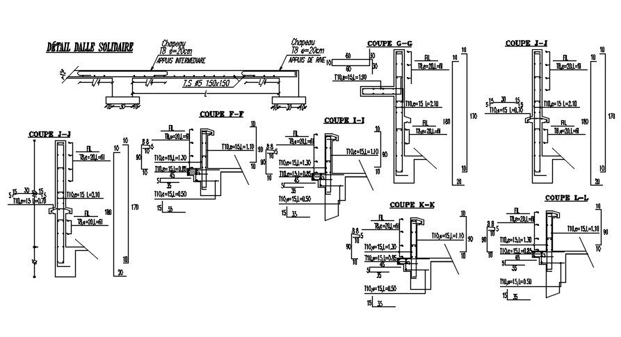 Section design of coping with reinforcement details in AutoCAD 2D drawing, CAD file, dwg file