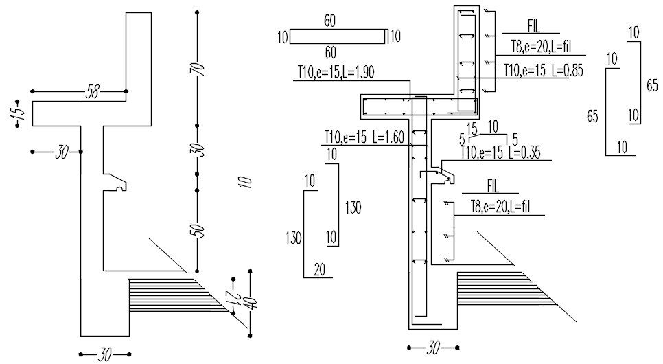 Design of coping section with formwork and reinforcement details in AutoCAD 2D drawing, CAD file, dwg file