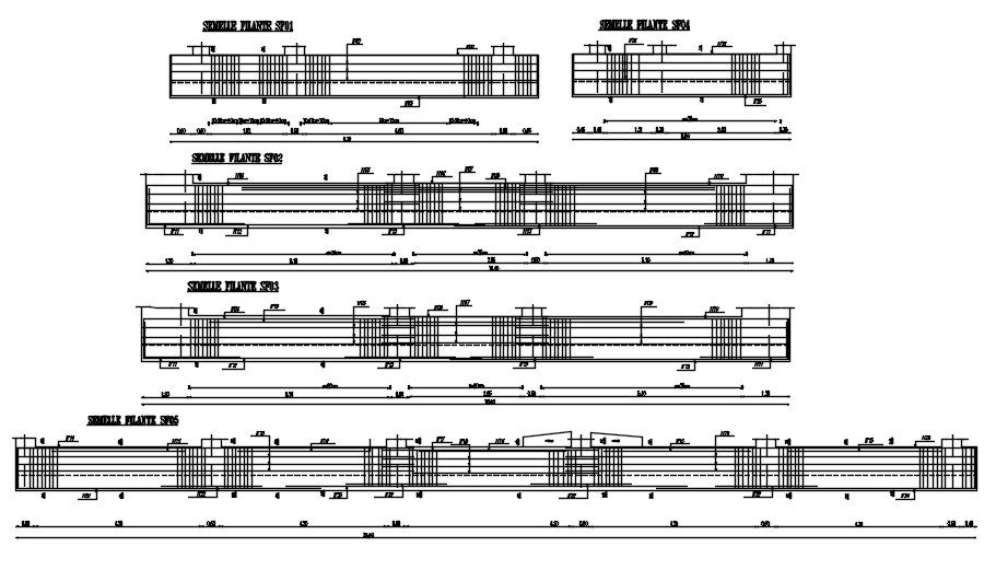 AutoCAD 2D drawing of strip foundation reinforcement details, dwg file, CAD file