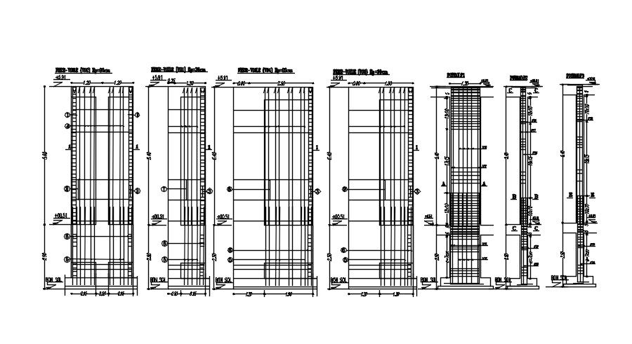 This architectural drawing is Wall and column section with reinforcement details design in AutoCAD 2D drawing, CAD file, dwg file. For more details and information download the drawing file. Thank you for visiting our website cadbull.com.