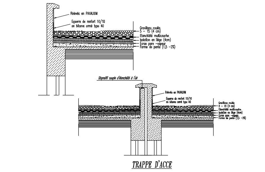 2D Design of waterproofing details of the terrace in AutoCAD drawing, CAD file, dwg file