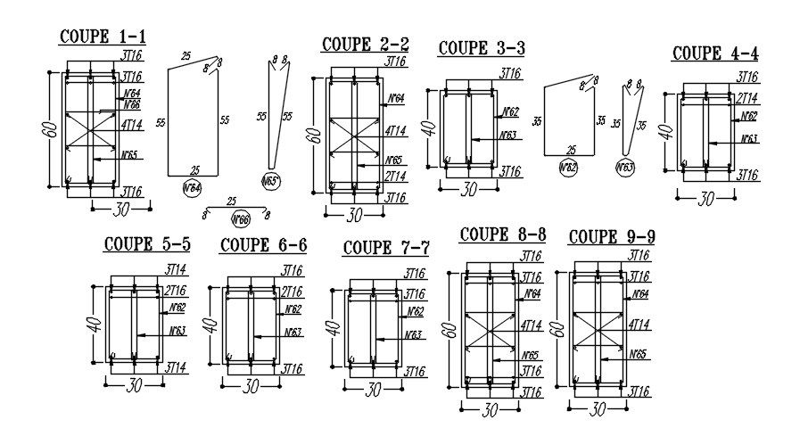 This architectural drawing is Beam section design with reinforcement details in AutoCAD 2D drawing, CAD file, dwg file. For more details and information download the drawing file. Thank you for visiting our website cadbull.com.