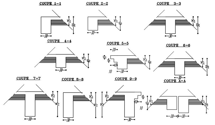 This architectural drawing is Different sections design of structure with formwork details in AutoCAD 2D drawing, CAD file, dwg file. For more details and information download the drawing file. Thank you for visiting our website cadbull.com.