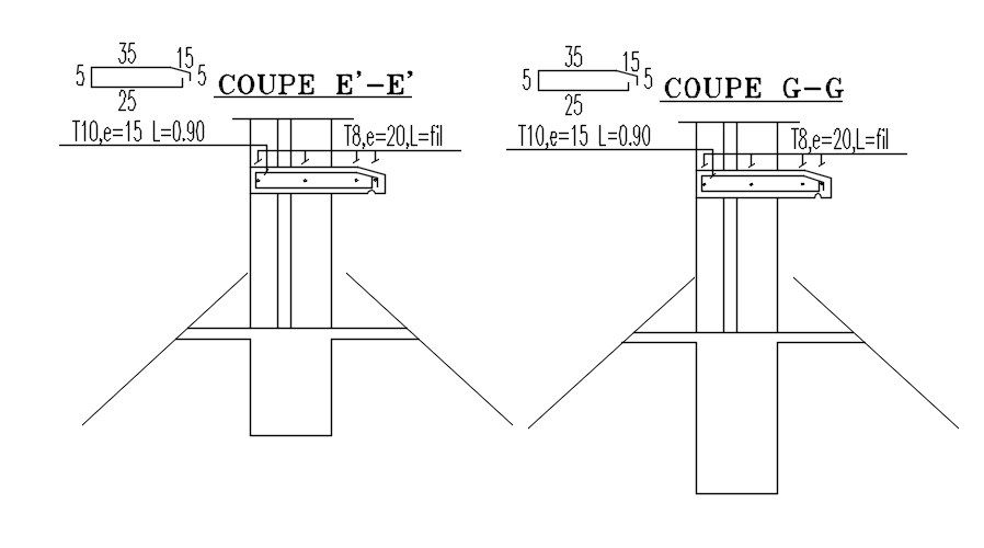 Cross section of coping with reinforcement details design in AutoCAD 2D drawing, CAD file, dwg file