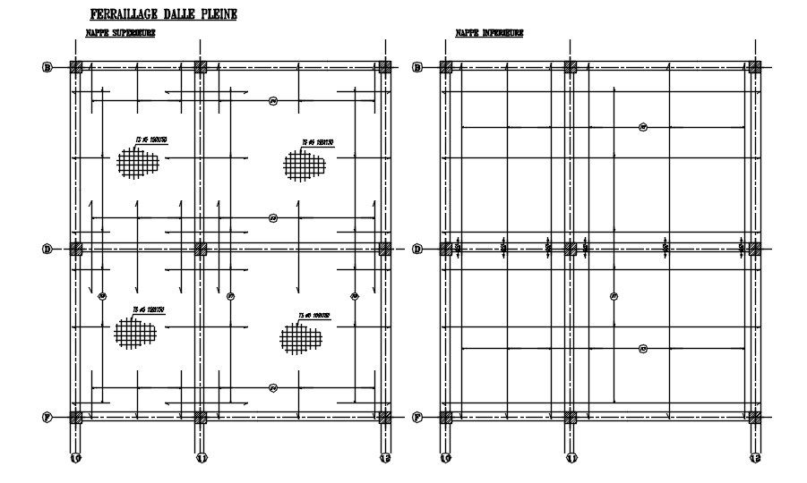 Solid slab reinforcement details in AutoCAD 2D drawing, CAD file, dwg file