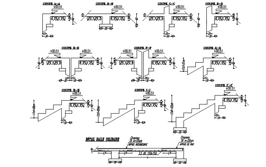 This architectural drawing is Different structures formwork details and slab reinforcement details designed in AutoCAD 2D drawing, CAD file, and dwg file. For more details and information download the drawing file. Thank you for visiting our website cadbull.com.