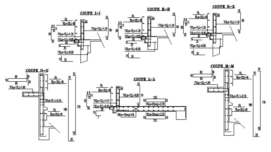 Reinforcement details of coping structure in AutoCAD 2D drawing, CAD file, dwg file