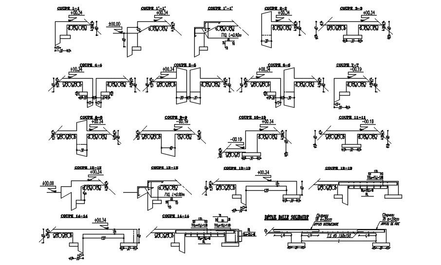 AutoCAD 2D drawing of different structures with formwork and reinforcement details, CAD file, dwg file