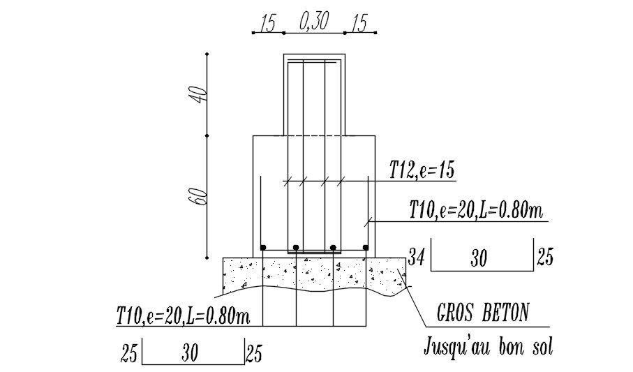 60x60cm column reinforcement details in AutoCAD 2D drawing, CAD file, dwg file