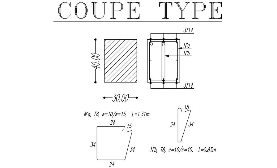 This architectural drawing is a Cross section of a 30x40cm size beam with reinforcement details in AutoCAD 2D drawing, CAD file, and dwg file. For more details and information download the drawing file.
