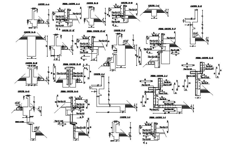 This architectural drawing is Formwork and reinforcement details of the coping structure of the cinema building in AutoCAD 2D drawing, CAD file, and dwg file. For more details and information download the drawing file.