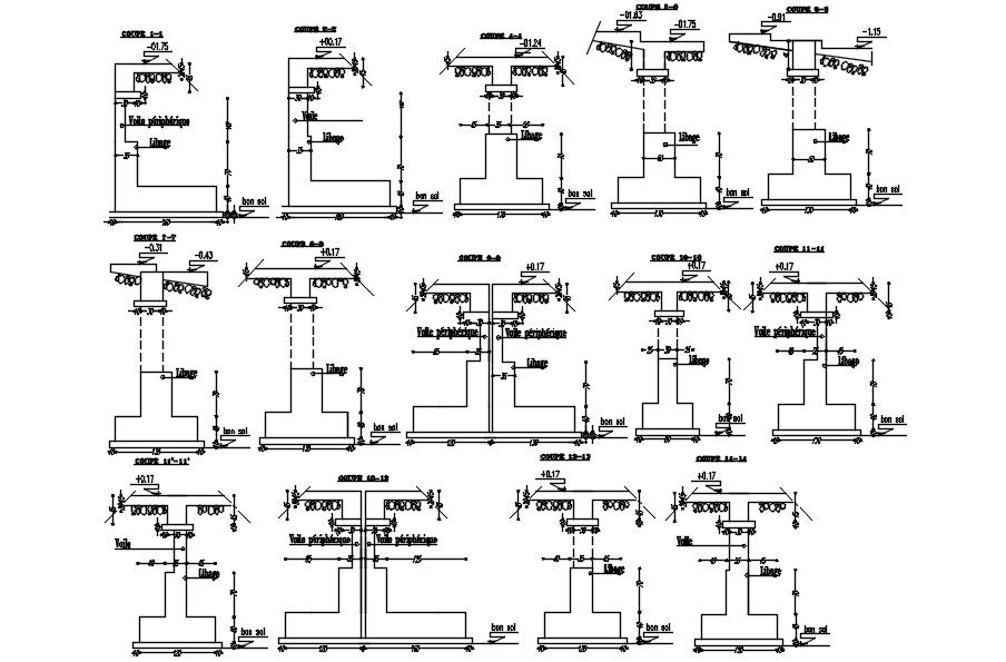 Cross sections of different foundation structures design in detail AutoCAD 2D drawing, CAD file, dwg file