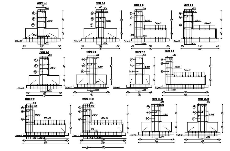 2D design of reinforcement details of the footing structure in AutoCAD drawing, CAD file, dwg file