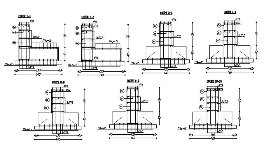 AutoCAD 2D drawing of reinforcement details of the footing structure, CAD file, dwg file