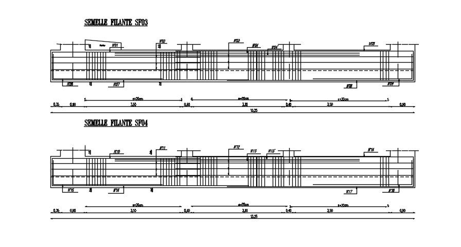 This architectural drawing is FORMWORK-REINFORCEMENT details of the strip foundation in AutoCAD 2D drawing, CAD file, and dwg file. For more details and information download the drawing file.