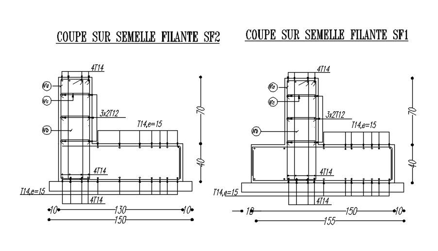 2D design of reinforcement details of the footing in AutoCAD drawing, CAD file, dwg file