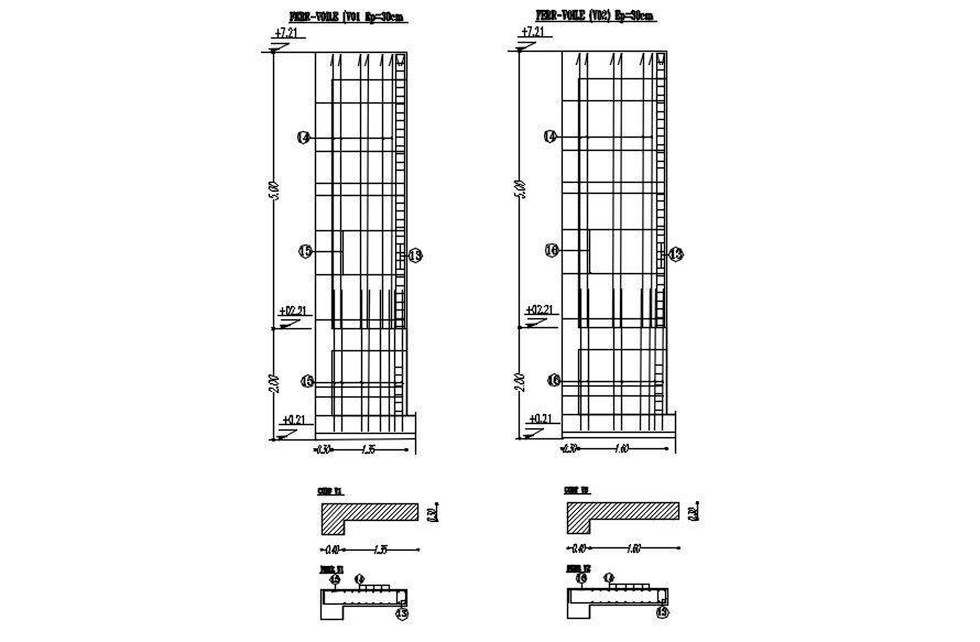 Formwork and reinforcement details of the wall in AutoCAD 2D drawing, CAD file, dwg file