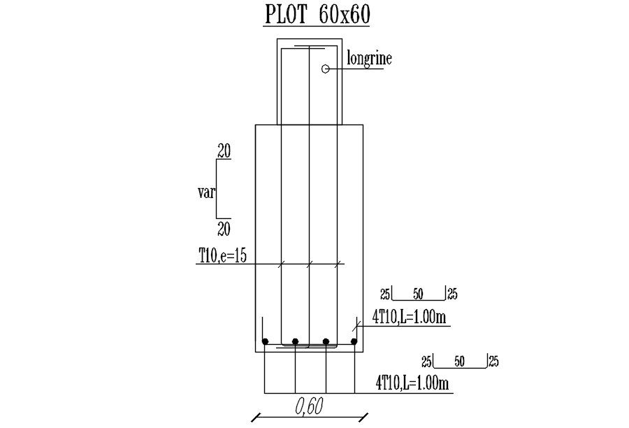 This architectural drawing is Plot 60x60 with reinforcement details in AutoCAD 2D drawing, CAD file, and dwg file. For more details and information download the drawing file.