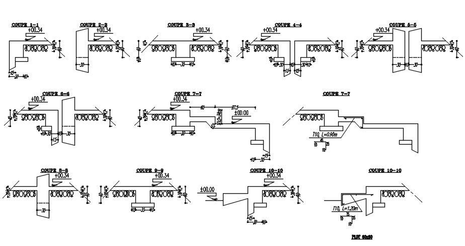 2D design of Bridge abutment wall plan with details in AutoCAD drawing, CAD file, dwg file