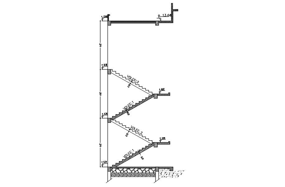 Line plan of stairs in steel structure plan and design with dimension in AutoCad dwg.