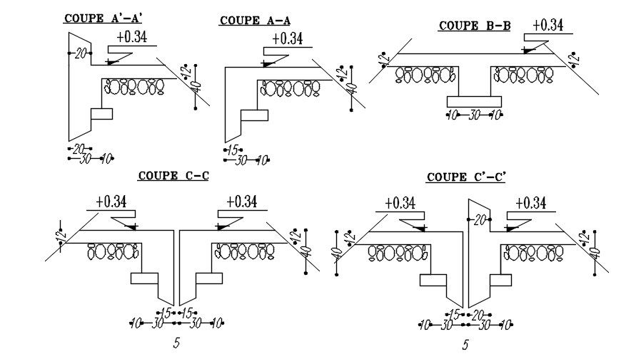This architectural drawing is a Steel structure part component layout plan details drawing in 2D and sections A-A, A'-A', B-B, C-C, C'-C' dwg, CAD file, dwg file. The steel structure part of the component here used the L section or T section. For more details and information download the drawing file.